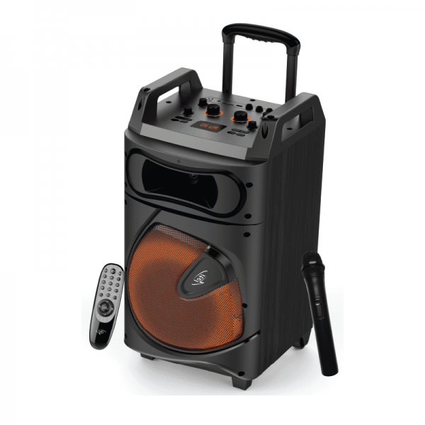 Bluetooth Connectivity FM Tuner USB port SD card slot Aux input Mic Recording TV IN Equalizer Impedance Satellite Speaker Bass LED Display MDF and PVC Built-in 12v 4500mAh battery Trolley Design